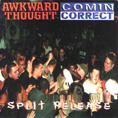 AWKWARD THOUGHT / COMIN CORRECT Split 7" record. Split label release in 1998 on NAWPOST / BACK TA BASICS records. This 7" record featured 2 songs from each band. Press run of 2000 copies - sold out. AWKWARD THOUGHT Track Listing: